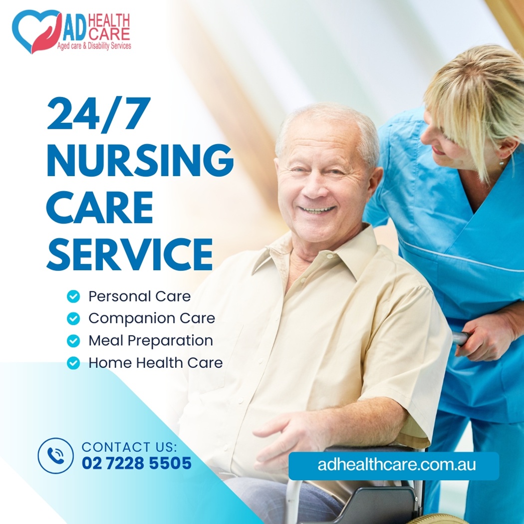AD Healthcare offers reliable and compassionate 24/7 Nursing Care Service, providing round-the-clock professional nursing support tailored to meet the complex health needs of individuals in the comfort of their own homes. Our highly skilled nurses deliver continuous care, including medication administration, wound management, monitoring of chronic conditions, and post-operative support, ensuring safety and peace of mind for both clients and their families. Committed to maintaining the highest standards of care, AD Healthcare’s 24/7 nursing services promote independence and wellbeing while offering timely medical attention whenever needed. Choose AD Healthcare for trusted, flexible, and dedicated 24/7 nursing care. Contact us today to learn more!