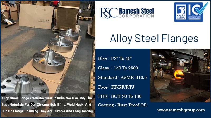 Ramesh Steel Corporation is among leading Alloy Steel Flanges Manufacturers, producing flanges that withstand extreme temperature and pressure. Perfect for energy, refinery, and process industries requiring high-strength components.