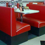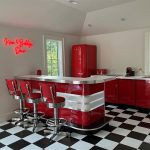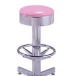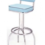 The Model B4T2 classic retro bar stool features a smooth chrome ring swivel seat, 3.5″ chrome column, foot ring, black or chrome base. Foot ring is optional, image depicts stool with the #404 foot ring and chrome base.