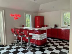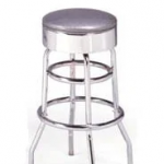 The Model B4T3 classic retro bar stool features a grooved chrome ring swivel seat, 3.5″ chrome column, foot ring, and black base. Foot ring is optional, image depicts stool with the #404 foot ring.