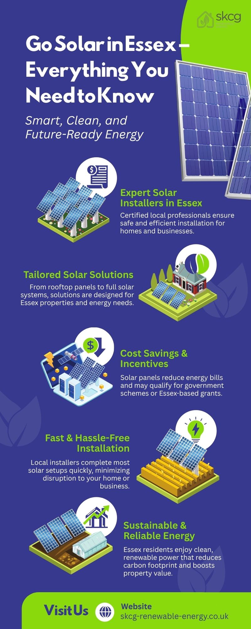 Thinking about switching to solar? SKCG Renewable Energy, a trusted solar installer Essex, offers tailored solar solutions for homes and businesses. From consultation to installation, we make going solar simple, affordable, and sustainable—helping you save money while reducing your carbon footprint.