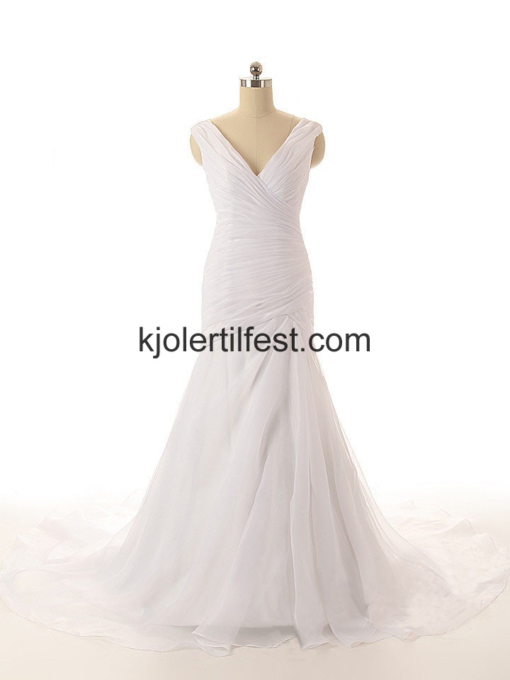Havfrue/Trompet V-hals Hvit Organza Brudekjoler – Kjolertilfest.com