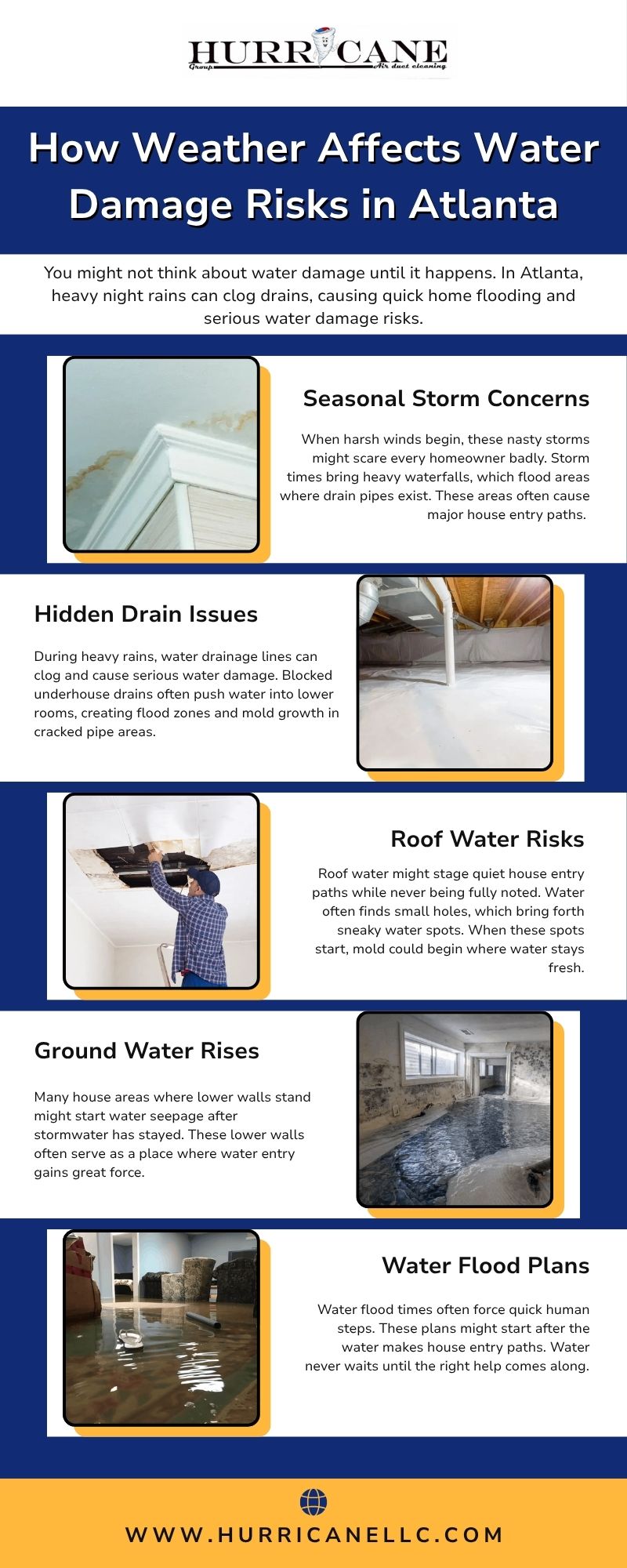 Hurricane Group provides professional water damage restoration services in Atlanta and the Metro GA area. From heavy rains and roof leaks to clogged drains and basement flooding, our experts handle every emergency fast. We repair water damage, prevent mold growth, and restore your property to a safe, dry state. Count on Hurricane Group for quick response, expert cleanup, and long-lasting protection after any storm or flood.