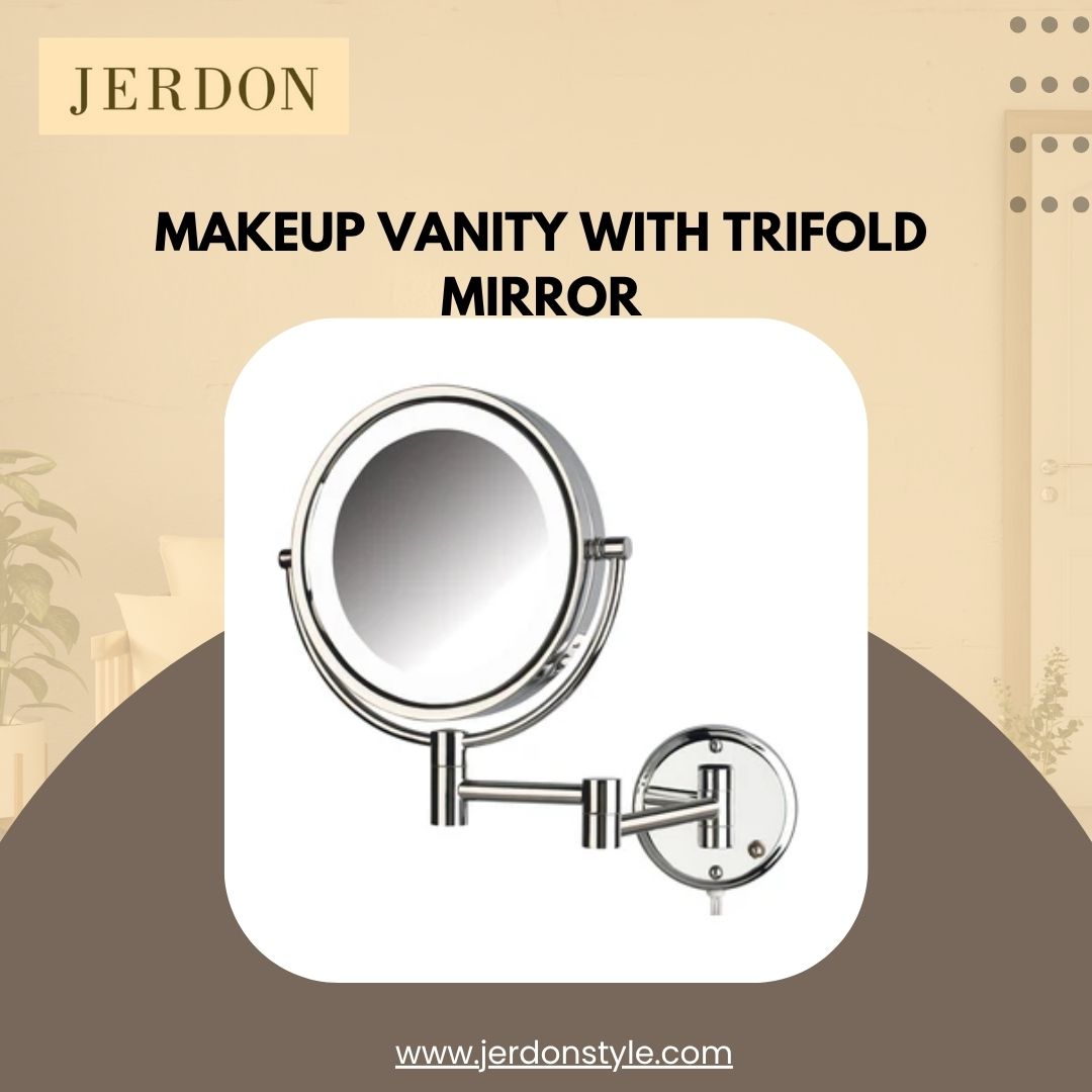 Bring sophistication and functionality to your space with a makeup vanity with trifold mirror from Jerdon Style. Featuring three adjustable panels, it provides wide-angle viewing for detailed makeup and skincare routines. The elegant design, combined with soft lighting and ample tabletop space, makes it a centerpiece for any bedroom or dressing area.