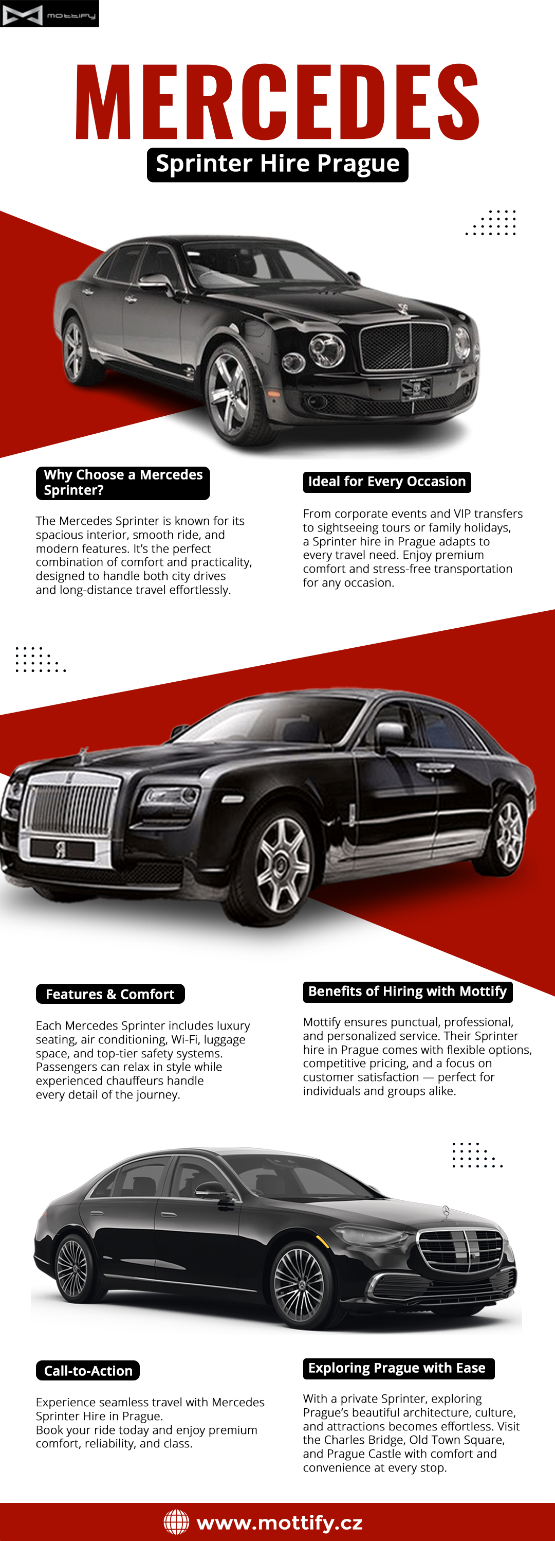 Mottify offers Mercedes Sprinter minibus hire in Prague for groups up to 20, with professional drivers, Wi-Fi, and flexible seating.