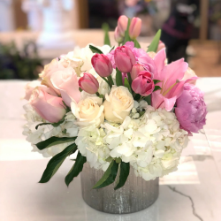 Let your sentiments bloom with “Purple Rain,” a luxurious floral arrangement crafted with soft pink roses, lavender stock, delicate spray roses, and pops of purple asters. This graceful bouquet is perfect for celebrating love, milestones, or simply brightening someone’s day. Whether you’re sending a heartfelt gesture or decorating your space, this radiant design is sure to make a lasting impression.