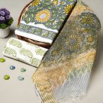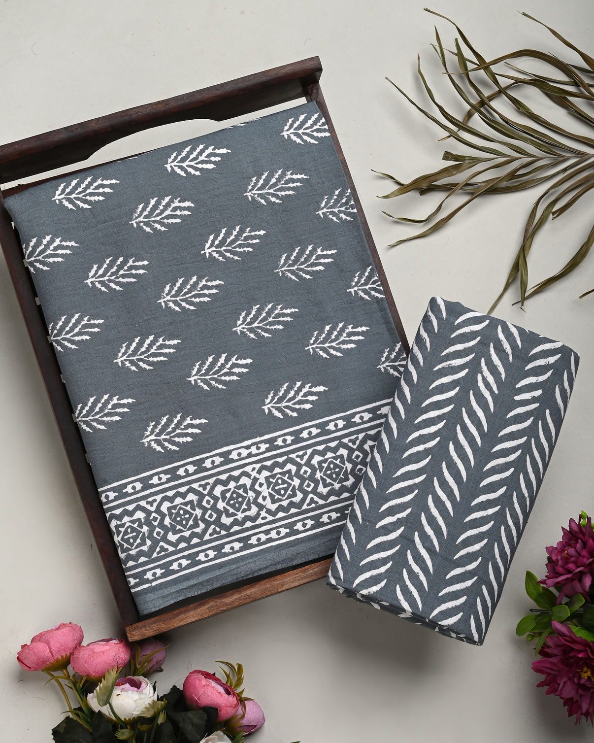 Browse Jaipuri cotton suits online shopping with soft chiffon dupatta and elegant Kota Doria dupatta. Stylish discharge prints crafted in pure cotton.