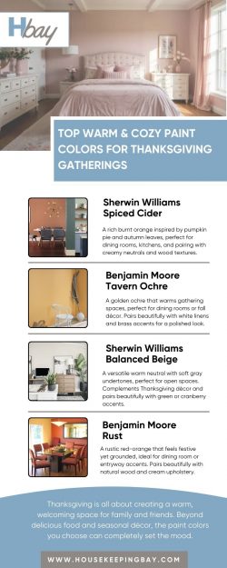 Housekeepingbay helps you create the perfect Thanksgiving setting with warm, cozy paint colors. Discover rich burnt oranges, golden ochres, timeless neutrals, and rustic reds that set the mood for gatherings. From expert paint reviews to decor inspiration, we guide you in transforming dining and living spaces into festive, welcoming retreats.