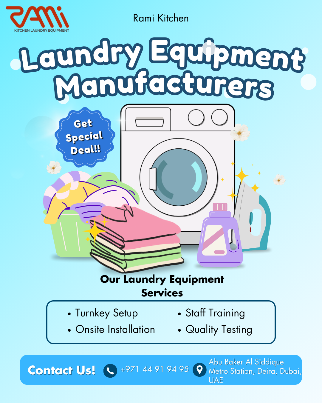 Rami Kitchen is among the leading laundry equipment manufacturers, offering durable and innovative machines designed to meet modern needs. With a focus on quality and performance, the company provides reliable solutions for hotels, hospitals, and commercial laundries. Each product is built to ensure energy efficiency, easy operation, and long-lasting service. Rami Kitchen’s expertise makes it a preferred choice for businesses seeking dependable laundry equipment.